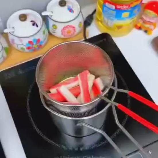 The mirror-finish stainless steel body provides durability and easy cleaning, while the pouring spout allows smooth oil transfer without spills. The long heat-resistant metal handle keeps your hands safely away from hot oil.Perfect for frying fries, chicken, pakoras, fish, and snacks at home.
